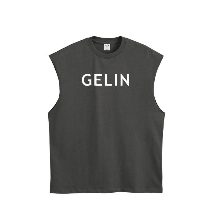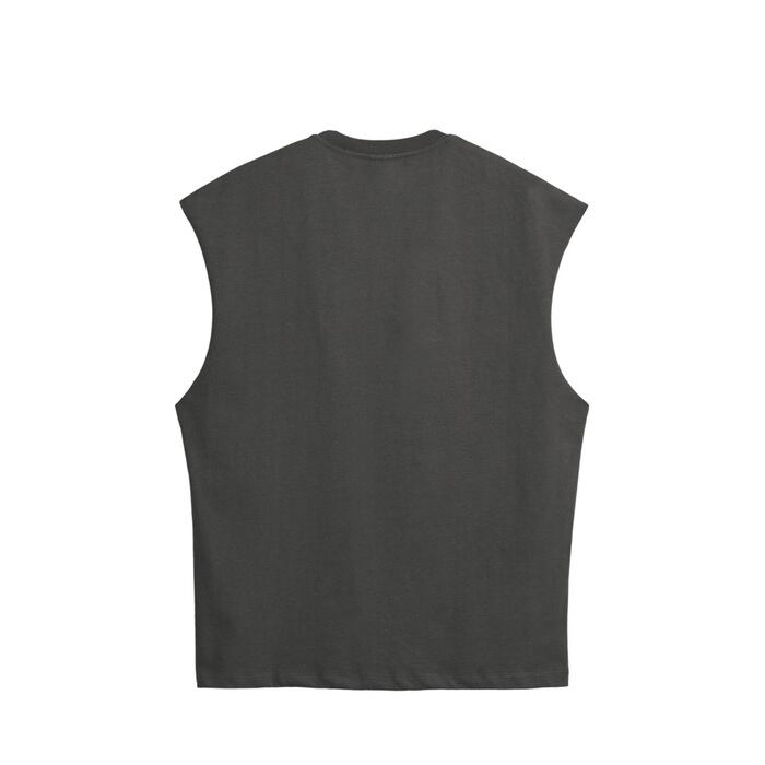 切りっぱなしの袖が特徴のタンクトップ。
